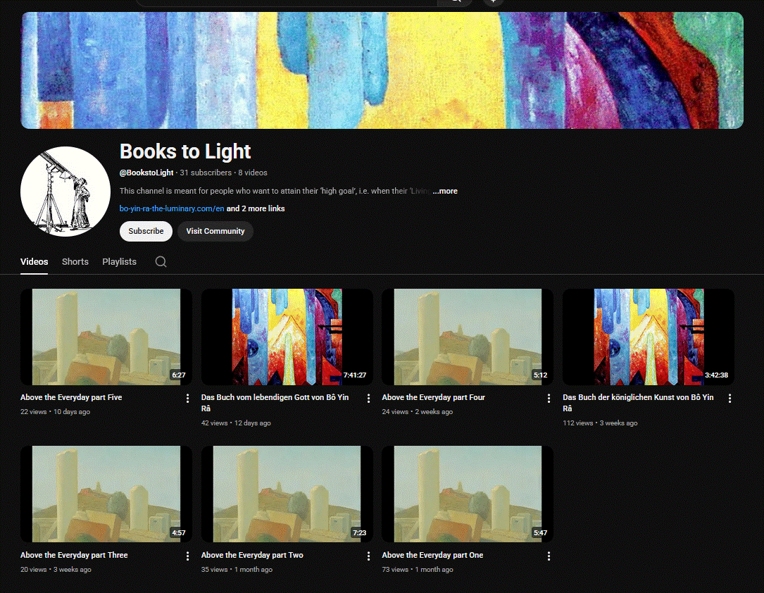 YouTube Channel of the Books to Light